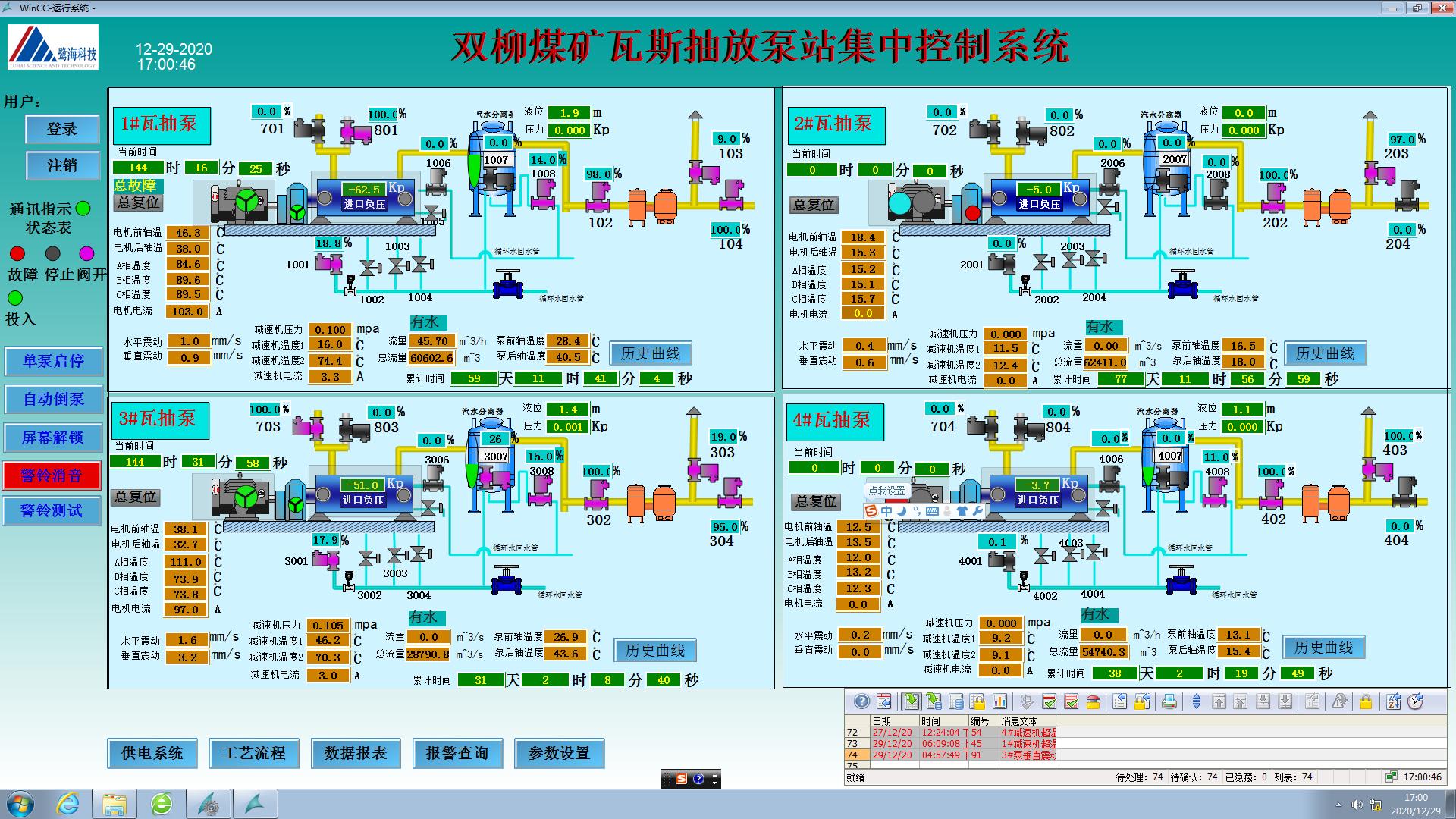 實(shí)現(xiàn)瓦抽站重點(diǎn)設(shè)備遠(yuǎn)程控制、一鍵倒泵、故障自動倒泵等功能